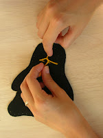 * Corpo: 2 sagome preforate in feltro nero e 70 cm di filo di lana giallo,